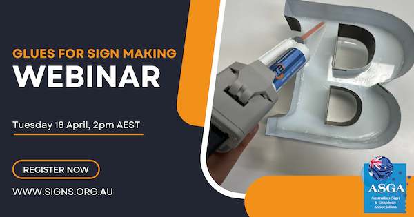 “There is not one glue that suits all projects. Knowing which glue to use and how to apply them is essential knowledge for all sign fabricators. With the latest in glue technology covered in this webinar, and following on from our channel letter bending webinar where glues were only briefly mentioned, fabricators of all levels are encouraged to register”.