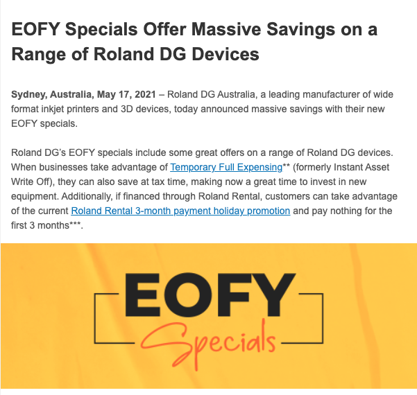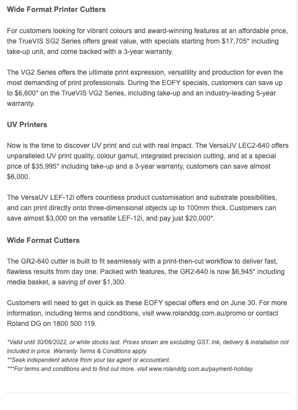 EOFY Specials Offer Massive Savings on a Range of Roland DG Devices