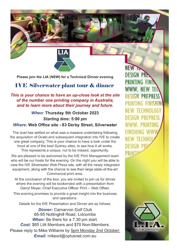 Please join the LIA (NSW) for a Technical Dinner evening