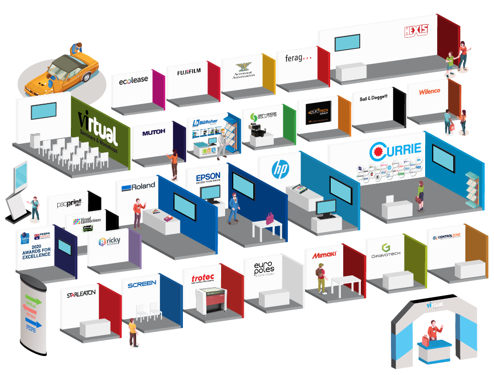 The show features virtual stands from some of the industry’s leading names, including Currie Group, Hexis, Epson, HP and Roland DG, Aeronaut Automation, Ball & Doggett, Bottcher, Control Zone, Ecolease, Europoles, EuroTech Group, Ferag, Fumifilm, Gravotech, Mimaki, Mutoh, Ricky Richards, Screen, Sign to Badge Solutions, Starleaton, Trotec, and Wilenco.